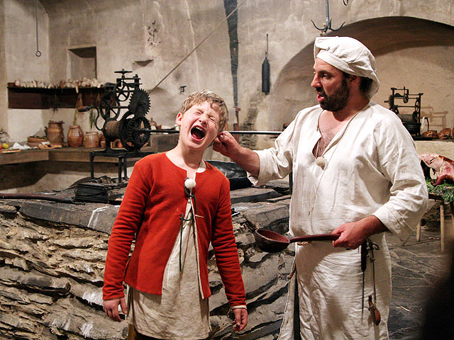 Das Leben auf einer Burg hat immer wieder unsere Fantasie angeregt. Burgen sicherten im Mittelalter das Land vor seinen Feinden, waren Wohn- und Herrschaftssitz der Adligen und Ausdruck ihrer Machtfülle. Aber wir sehen meist nur die kirchlichen und weltlichen Fürsten, die Päpste und Kaiser, die Ritter und Bischöfe, eventuell noch Bauern. Doch wie haben die Menschen wie du und ich gelebt im Mittelalter? Wie war ihr Alltag? In einer mehrteiligen Serie zeigen wir eine Gruppe von Menschen des Jahres 2005 im späten Mittelalter auf einer Burg. Nicht als Fürsten oder Grafen, sondern als Mägde und Knechte. Sechs Wochen lang sollen unsere Protagonisten in die Rollen ihrer mittelalterlichen Vorfahren schlüpfen und das 21. Jahrhundert für diese Zeit gänzlich hinter sich lassen. Der Zuschauer wird ihre Erfolge und ihr Scheitern begleiten. Gelingt es der jungen Magd, die Ziege zu melken? Können die beiden Knechte einen Baum fällen und aus seinem Holz ein neues Bett bauen? Und was macht das Gesinde als der Fuchs sich eine Gans holt? Am Ende dieser Zeitreise werden unsere Protagonisten vielleicht froh sein, die heute selbstverständlichen Annehmlichkeiten eines heißen Bades, von elektrischem Licht und Zentralheizung zurück zu gewinnen. Vielleicht werden sie aber auch um die Langsamkeit und Ruhe eines Zeitalters trauern, das ohne Wecker, Handy und Computer ausgekommen ist. Mehr unter www.abenteuer-mittelalter.de Auch auf DVD erhältlich