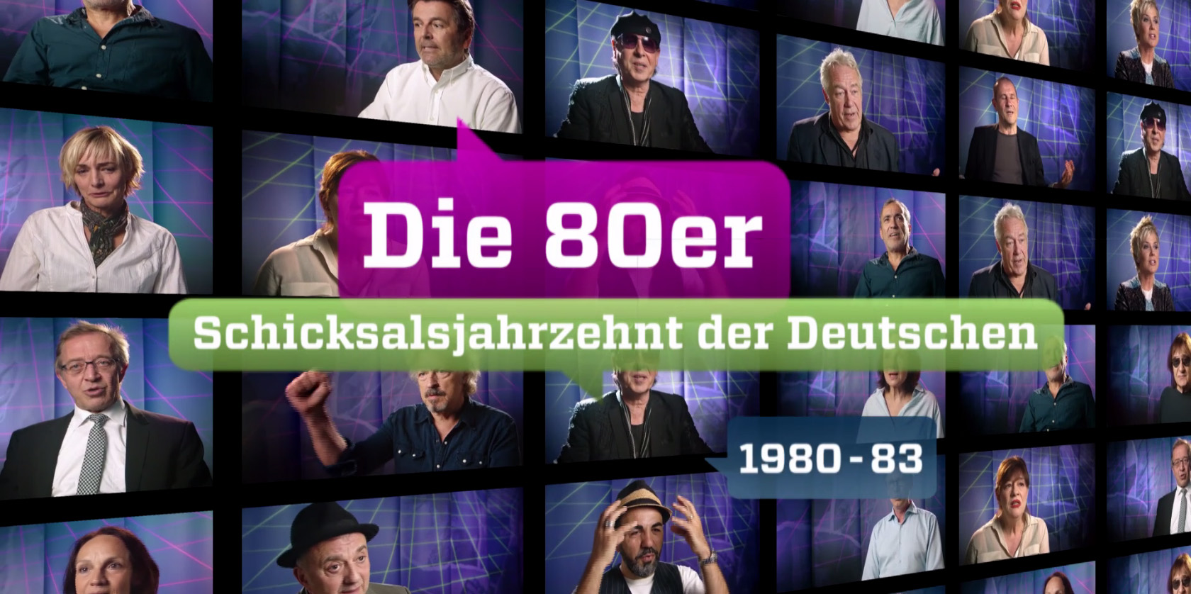 Die dreiteilige Doku Serie zeichnet ein ebenso unterhaltsames wie erhellendes Porträt dieses so wechselvollen Jahrzehnts. Musiker, Sportler und Künstler aus beiden Teilen Deutschlands machen die 80er mit ihren Erinnerungen wieder lebendig. Thomas Anders, Wolfgang Niedecken und Klaus Meine tauchen ebenso in die Zeit ein wie Dieter Birr von den Puhdys und Adnan Maral, der die 80er als Gastarbeiter-Kind in Frankfurt erlebt hat. TV-Ausschnitte lassen Mode, Musik, Politik und Alltagskultur der Dekade wieder auferstehen.