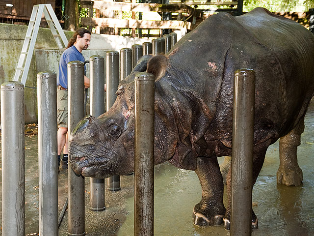Endlich hat Flocke einen adäquaten Spielgefährten: Rasputin heißt der fast gleichaltrige Eisbär, der aus Moskau nach Nürnberg gekommen ist. Der neue Freund soll der Handaufzucht auch den Abschied von ihren menschlichen Ersatzeltern erleichtern. Denn mittlerweile ist Flocke so kräftig geworden, dass Petra Fritz, Steffi Krüger und Kollegen den direkten Kontakt besser meiden. Ein Wiedersehen gibt es mit den großen Raubkatzen. Weil ihr Haus umgebaut werden musste, waren die beiden Löwen Keera und Thar sowie das Tigerpaar für fast zwei Jahre in anderen Zoos untergebracht. Und Sigena und Jantar haben ihrem Pfleger Horst „Mausi“ Maussner ein ganz besonderes Geschenk mitgebracht: Kaum zurück in Nürnberg hat das Tigerweibchen vier gesunde Babys zur Welt gebracht… Auch bei einer anderen äußerst bedrohten Art freut sich der Tiergarten über einen Zuchterfolg: Nach einer Tragzeit von 16 Monaten hat Panzernashorn Purana ein gesundes Mädchen zur Welt gebracht. René Kaiser und Oliver Pürkel haben nicht nur deswegen alle Hände voll zu tun. Zu allem Überfluss hat sich Ropen, der stolze Vater, auch noch am Fuß verletzt. Bei den Totenkopfaffen dagegen verläuft die Aufzucht des Jungtiers ohne Probleme. Noch kann Franziska Seifert (Foto) nicht sicher sagen, welches Geschlecht das Baby hat. Aber bei so viel liebevoller Pflege ist es wohl nur noch eine Frage der Zeit, bis sie auch zu dem allerkleinsten Totenkopfäffchen Tuchfühlung aufnehmen kann…